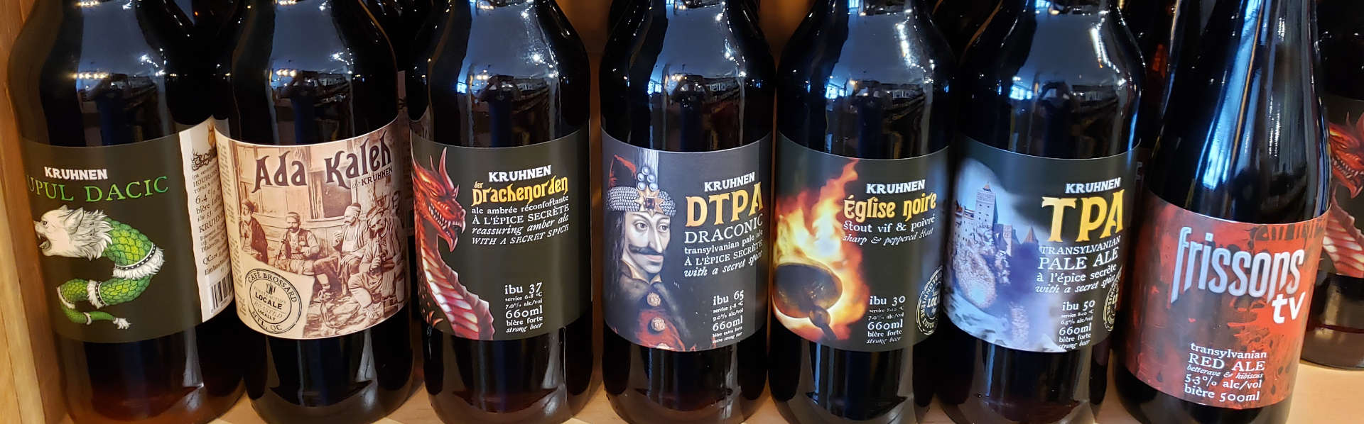 Depuis nos tout débuts, nous avons créés de nombreuses bières liées à l'histoire de Blainville et de la région. De gauche à droite : la Blainvilloise Aline Desjardins, La Cent Dix 7, Marea Prietenie, la 8/17, La Colonelle, La Bouchardaise, L'échevelée, la John Tapp, la Daphnée 2013, Walter Brown X, la Blainvilloise John Tapp, la Pâlale, la Blainvilloise Céloron de Blainville et La Belle-Soeur.